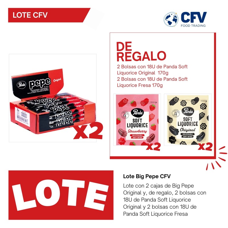 LOTE CON 2 CAJAS DE REGALIZ BIG PEPE 40U, 2 CAJAS DE PEPE ORIGINAL 18U Y 2 CAJAS DE PEPE FRESA 18U