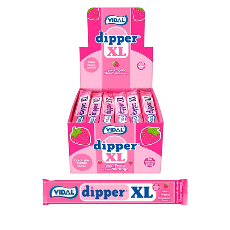 Estuche de 100 dippers XL sabor fresa, marca Vidal golosinas. Sin gluten